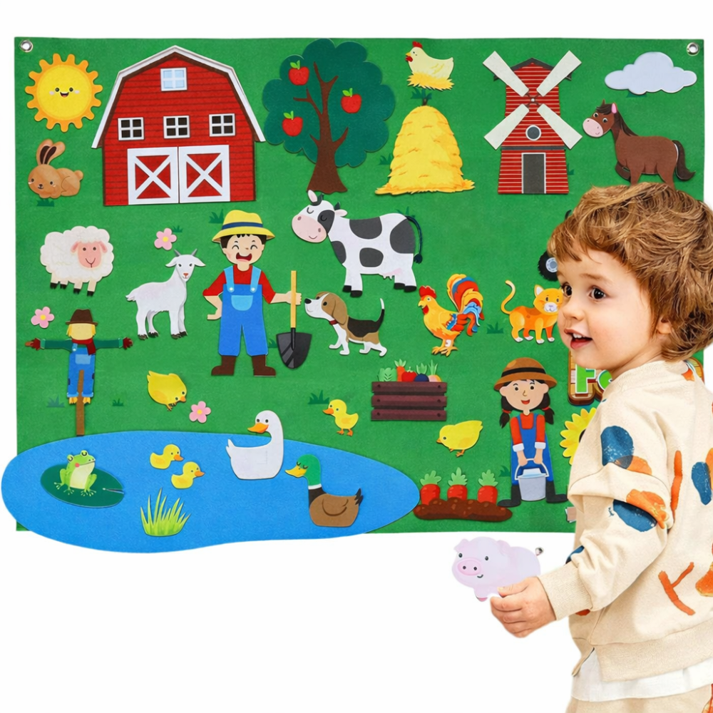 The felt pieces are cute and easy for little hands, and the farm + transportation themes keep it interesting. My child uses it both as a calendar and as a storytelling board, so it’s not just “learning” but also pretend play. It’s a great screen-free activity that actually gets used daily.