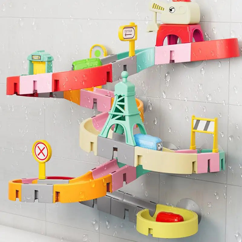 Use water or toys to zoom down the track—perfect for imaginative play and learning cause & effect. - 🛁 Strong Suction Cups