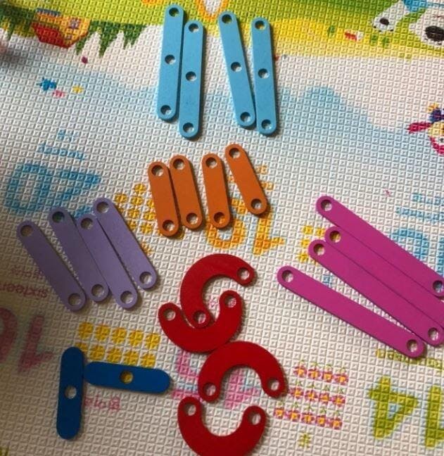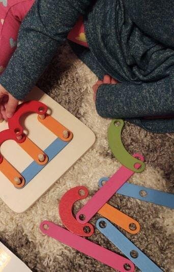 The pieces are solid, safe, and easy to work with. Great for hand-eye coordination and creativity. Just wish the board was slightly larger.